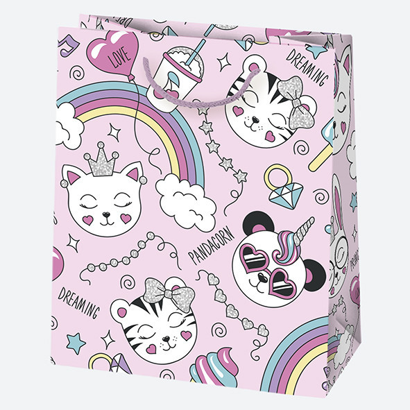 Állatos Sissy papír ajándéktasak, ajándékzacskó 19x23x10,5 cm