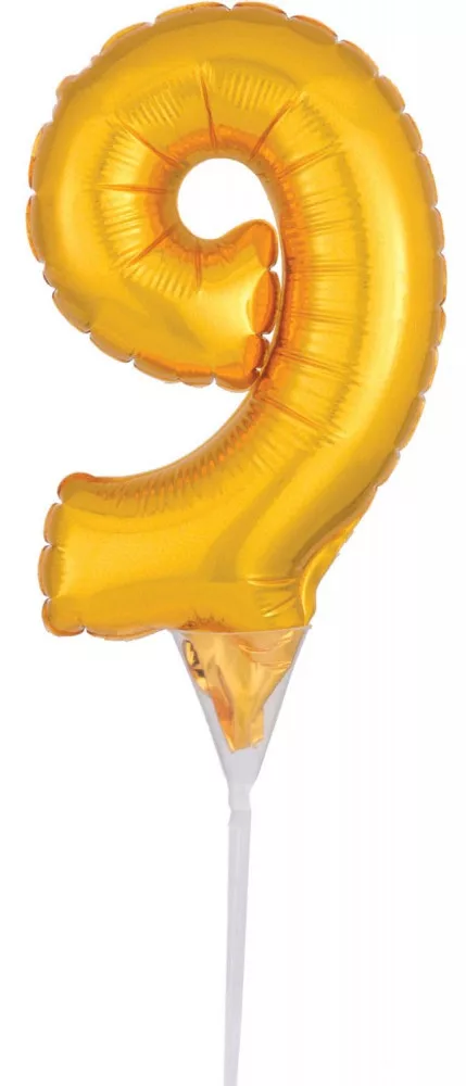 Arany Gold 9-es szám fólia lufi tortára 15 cm