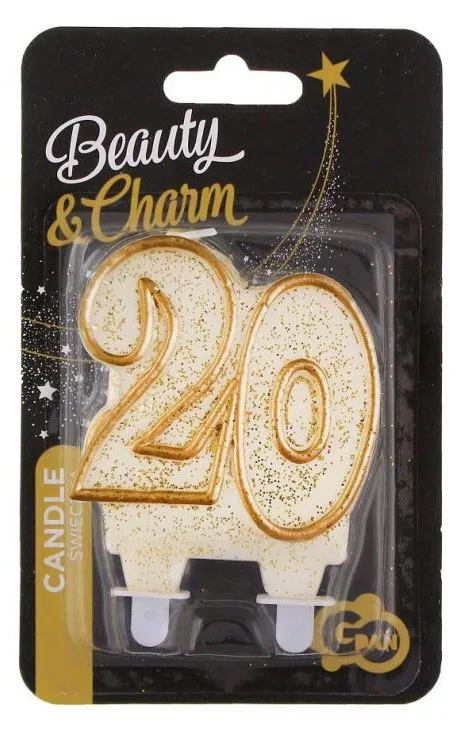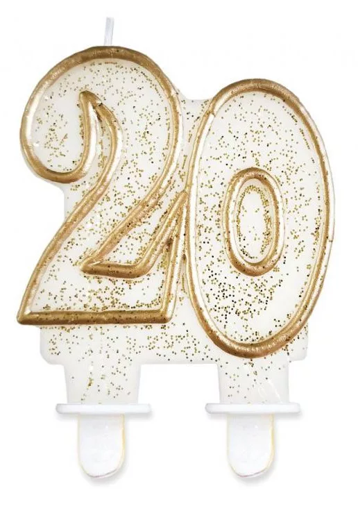 Arany csillámos 20-as Gold tortagyertya, számgyertya
