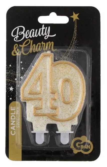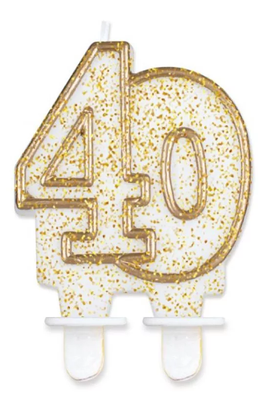 Arany csillámos tortagyertya, számgyertya 40-es