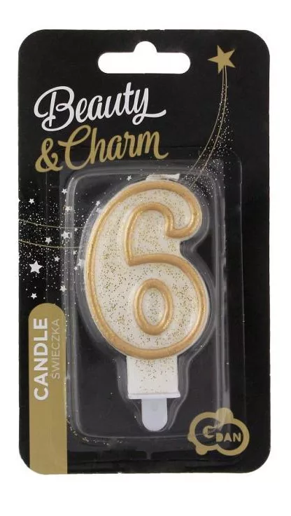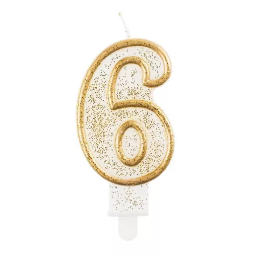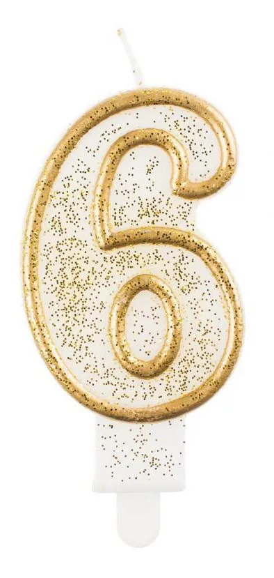 Arany csillámos számgyertya, tortagyertya 6-os