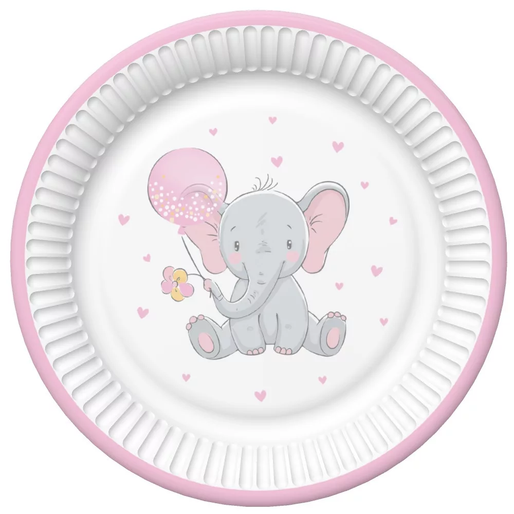 Baby elefánt Pink Balloon papírtányér 8 db-os 18 cm