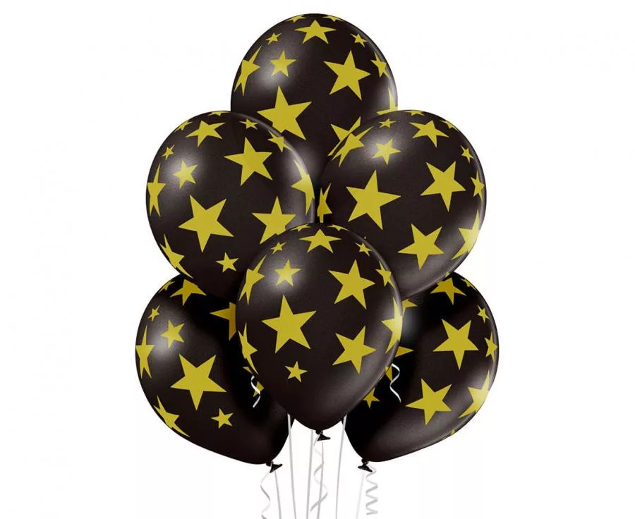 Black Star, Csillagos léggömb, lufi szett 6 db-os 30 cm (12 inch)