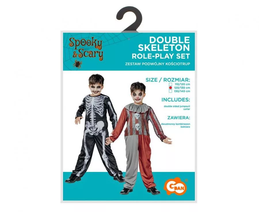 Csontváz és Bohóc Skeleton kifordítható jelmez 120/130 cm