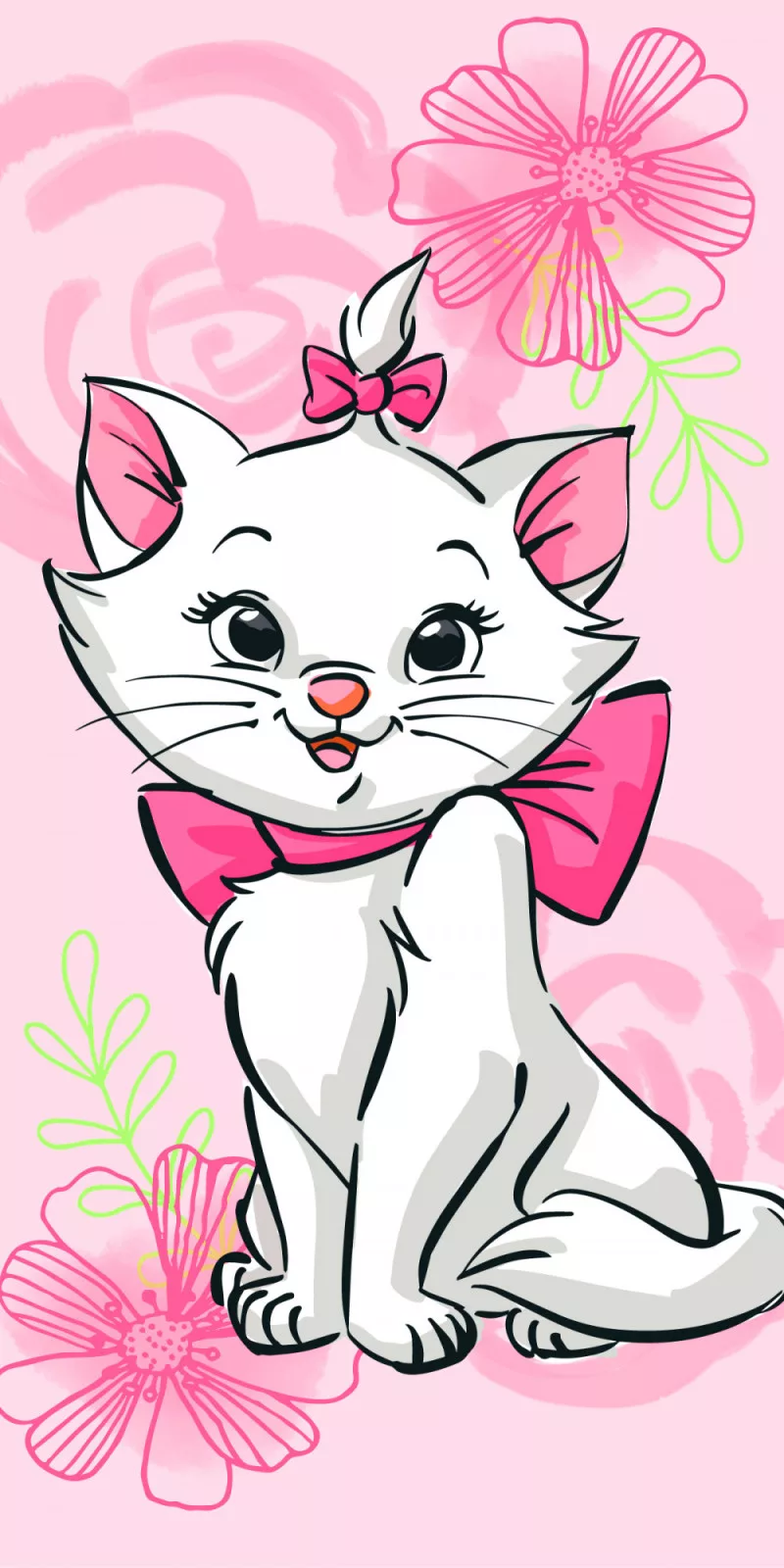 Disney Marie Cat, Marie Cica Pink Flower fürdőlepedő, strand törölköző
