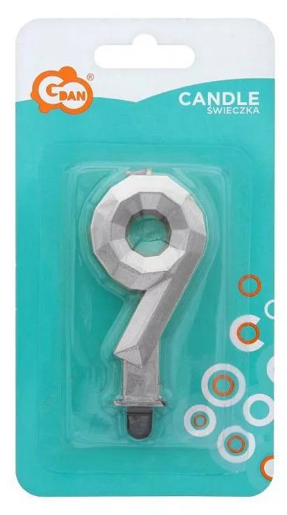 Ezüst számgyertya, tortagyertya 9-es