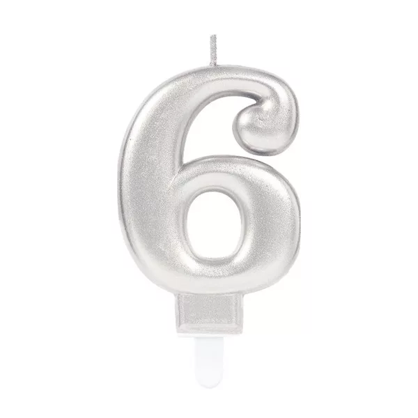 Ezüst Silver számgyertya, tortagyertya 6-os