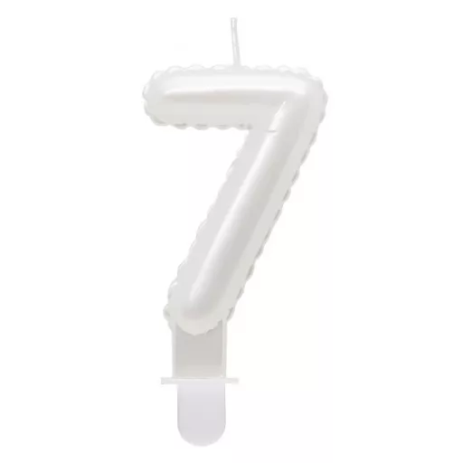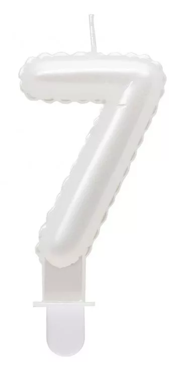 Fehér 7-es Pearly számgyertya, tortagyertya