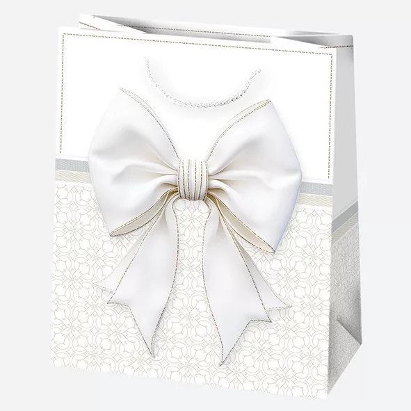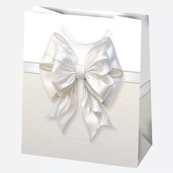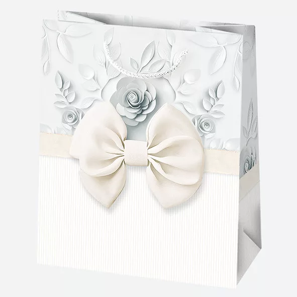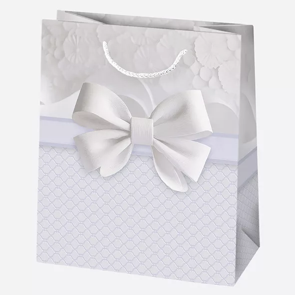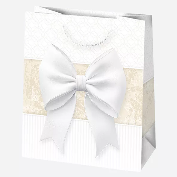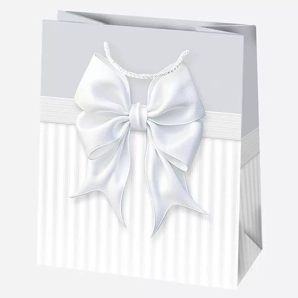 Fehér Bow papír ajándéktasak, ajándékzacskó 19x23x10,5 cm