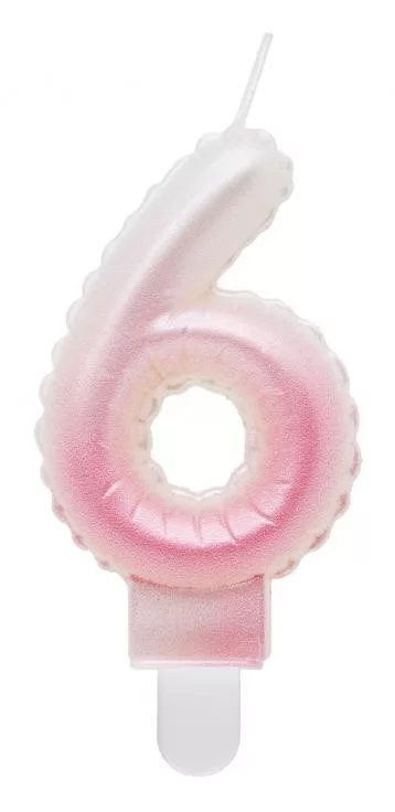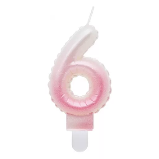Fehér-Rózsaszín 6-os Ombre számgyertya, tortagyertya