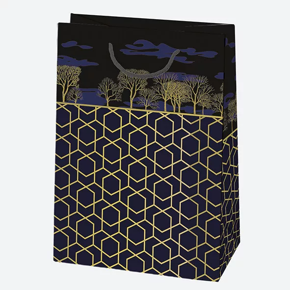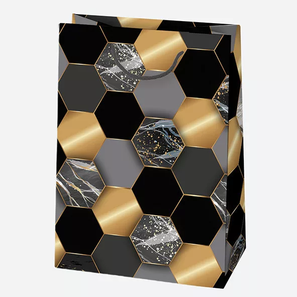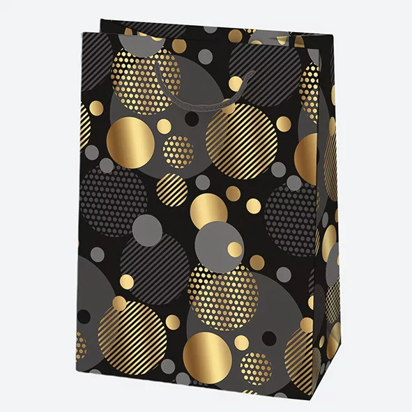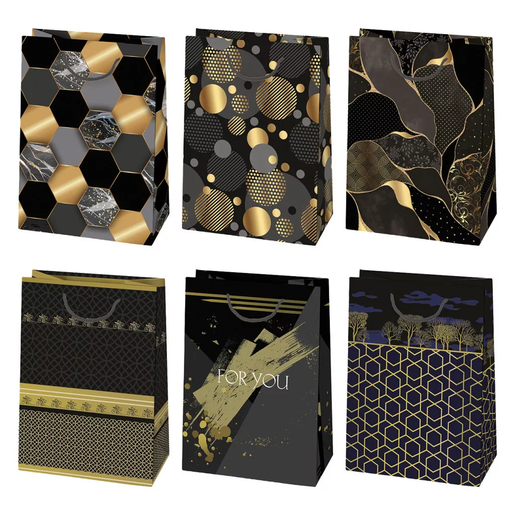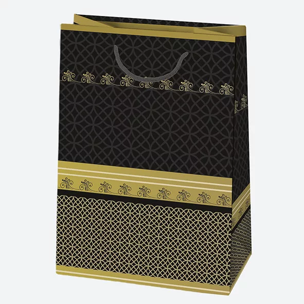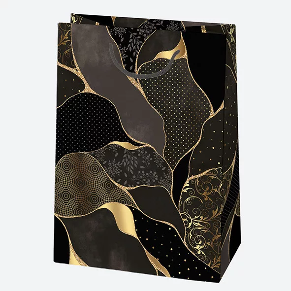 Fekete Arany mintás papír ajándéktasak, ajándékzacskó