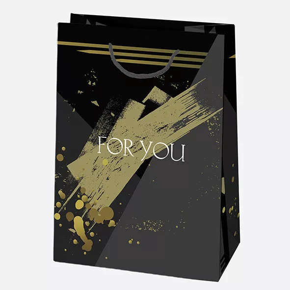 Fekete Arany mintás For You papír ajándéktasak, ajándékzacskó 23x32x11 cm