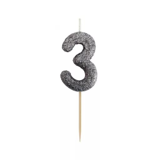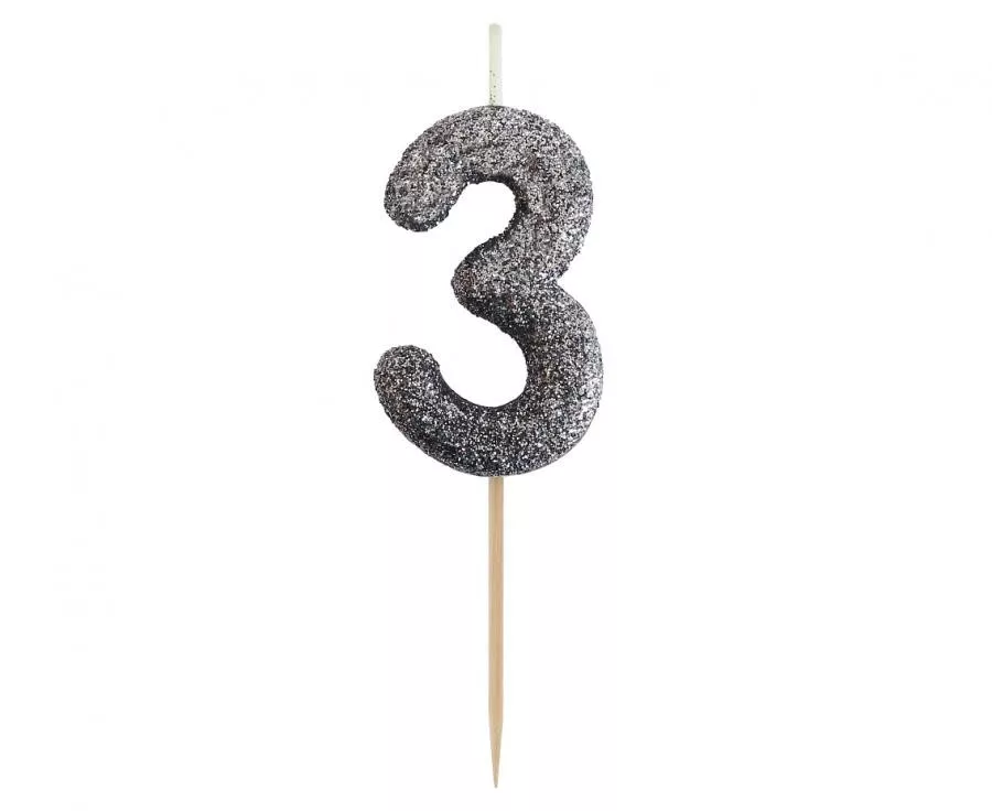Fekete Glitter Black számgyertya, tortagyertya 3-as