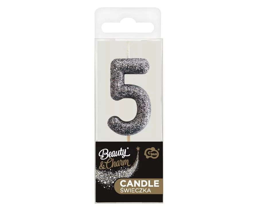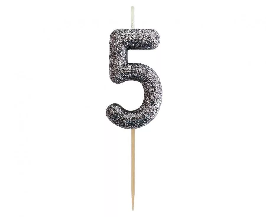 Fekete Glitter Black számgyertya, tortagyertya 5-ös