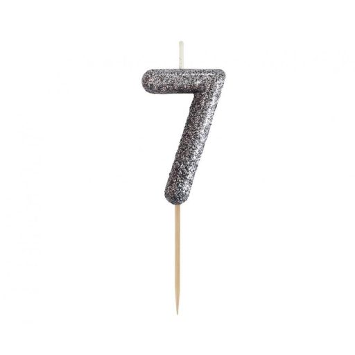 Fekete Glitter Black számgyertya, tortagyertya 7-es