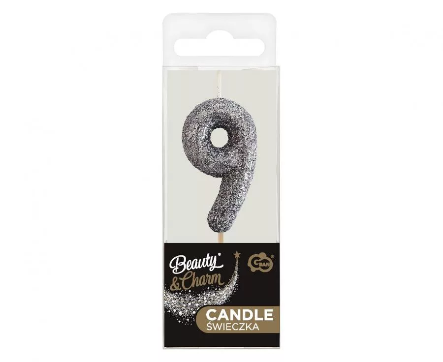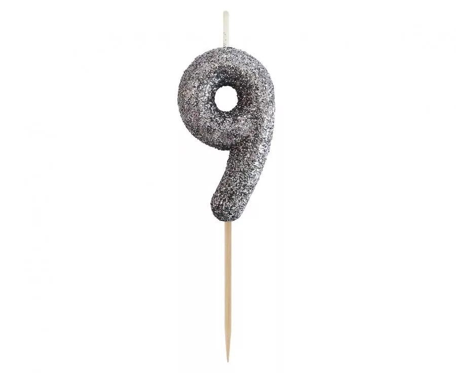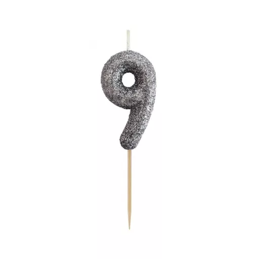 Glitter Black, Fekete számgyertya, tortagyertya 9-es
