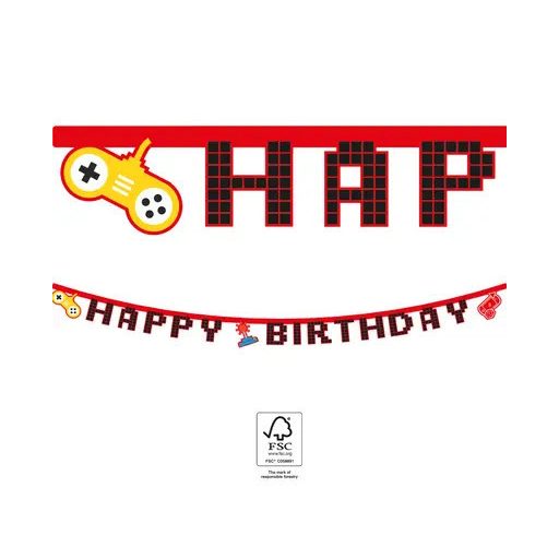 Gaming Party Happy Birthday felirat FSC 2 m