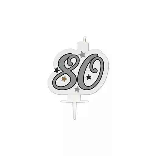 Happy Birthday Silver Milestone tortagyertya, számgyertya 80-as