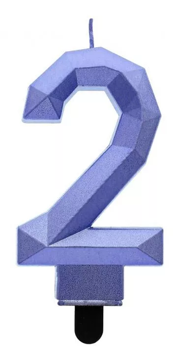 Kék 2-es Diamond Metallic számgyertya, tortagyertya