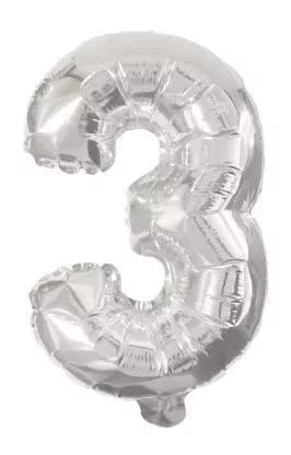 Mini 3-as Silver szám Fólia lufi 31 cm