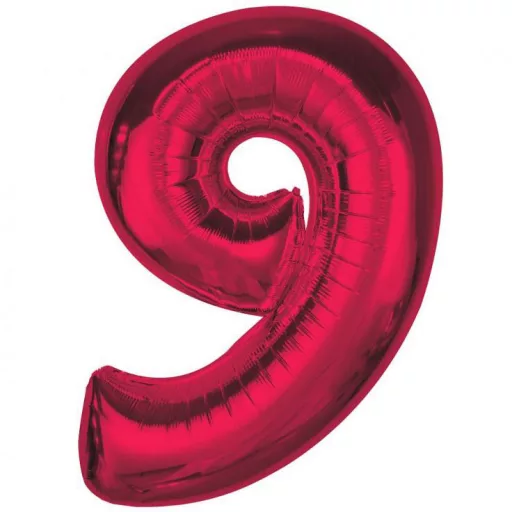 Piros 9-es szám fólia lufi 92 cm.