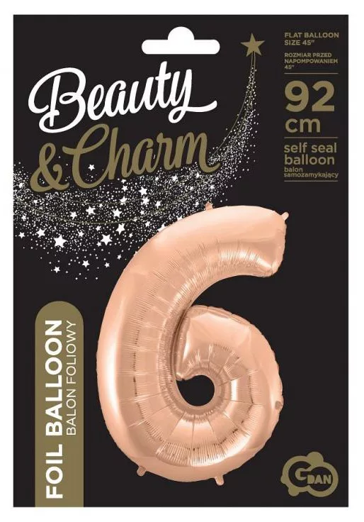 Rose Gold 6-os szám fólia lufi 92 cm