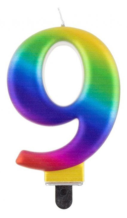 Színes számgyertya, tortagyertya 9-es