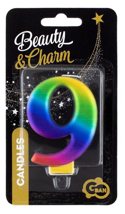 Színes 9-es Galaxy számgyertya, tortagyertya