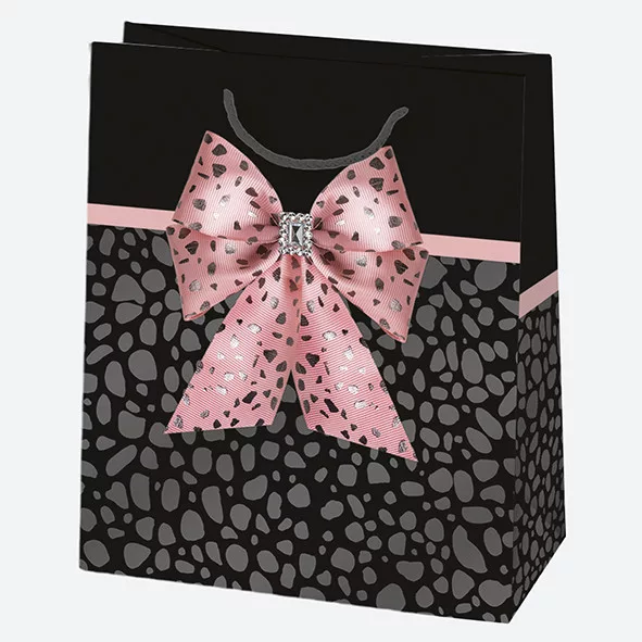 Színes Bow papír ajándéktasak, ajándékzacskó 19x23x10,5 cm