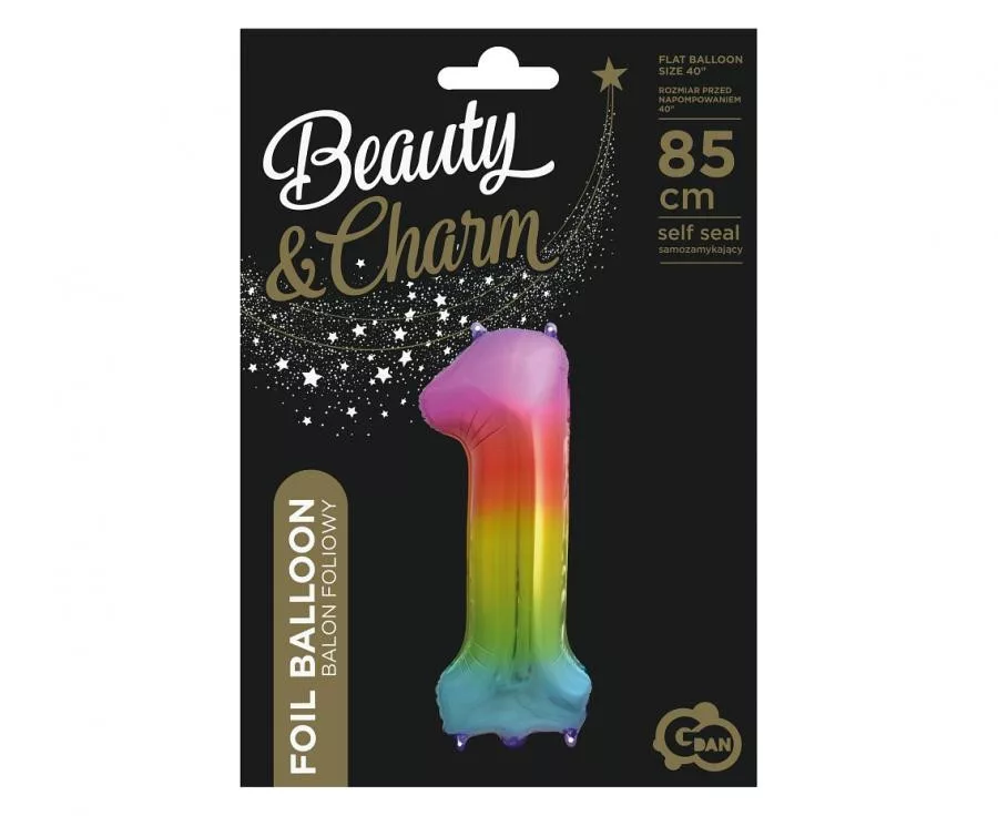 Szivárvány Rainbow 1-es szám fólia lufi 85 cm