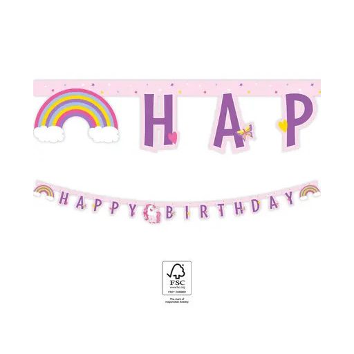 Unikornis Rainbow Colors Happy Birthday felirat FSC 2 m