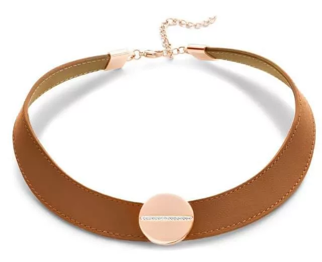 Victoria Fehér köves rose gold színű bőr nyaklánc