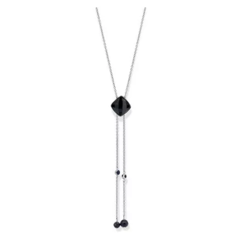 Victoria Ezüst színű fekete köves nyaklánc