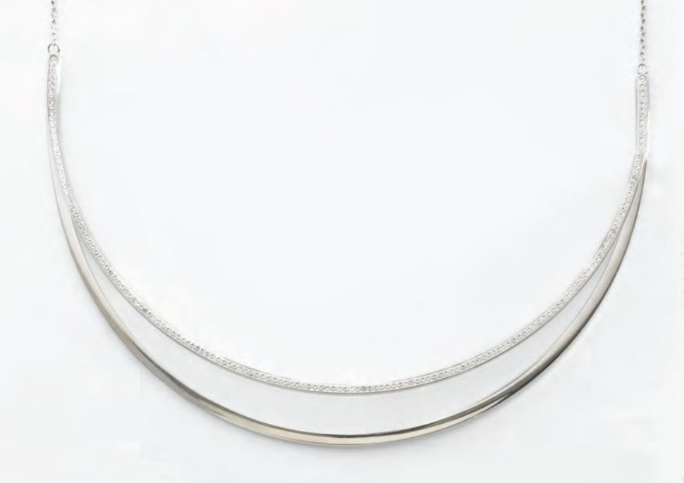 Victoria Ezüst színű fehér köves félhold nyaklánc